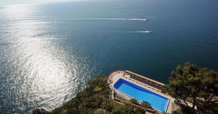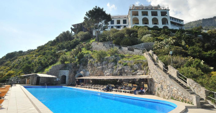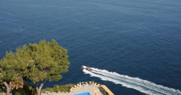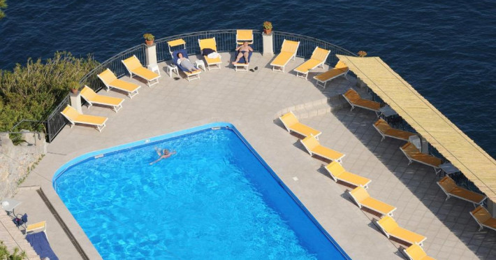 Hotelul are o scară de piatră care coboară la o plajă stancoasă privată. Liftul intern vă duce la piscina cu apă de mare a hotelului, situată pe o terasă intre mare si hotel.