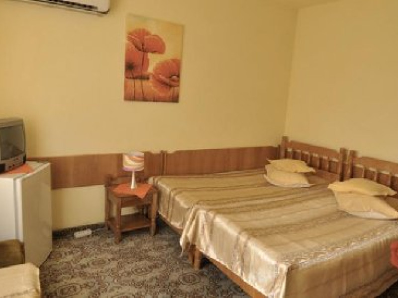 HOTEL: renovat 2010, situat la 200 m de plaja, 50 m de gara si 50 m de lacul Techirghiol, 118 camere duble, 4 etaje, parcare, bar, terasa, seif la receptie.CAMERE: baie, balcon, tv, frigider, plase tantari, parchet nou de cires.