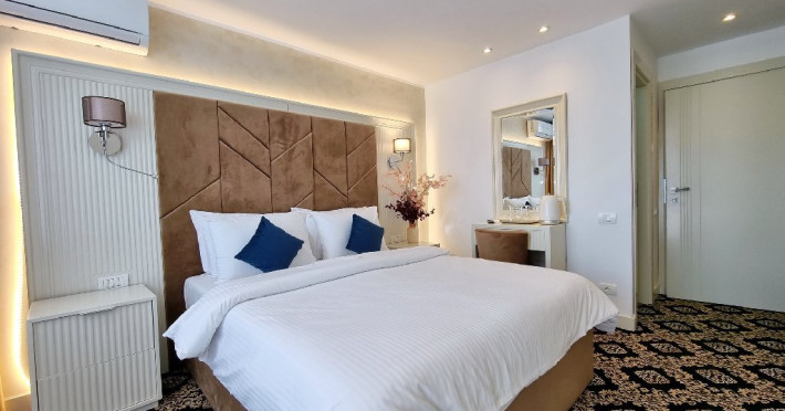 Hotel Belvedere 3 stele Eforie Nord este un hotel renovat in anul 2022, si reclasificat la 3 stele. Ofera acum oaspetilor sai camere amenajate modern si confortabil, in nuante naturale si cu materiale de calitate. Restaurantul se va moderniza in toamna 2022. Hotel Belvedere Eforie Nord este situat intre Lacul Techirghiol si mare, la doar 50 de metri de lac si la 500 de metri de plaja. Parcul statiunii, reamenajat in ultimii ani, se afla la doi pasi de hotel, iar centrul statiunii, la doar 300 de metri. Hotel Belvedere este un hotel cu 4 nivele care pune la dispozitia oaspetilor sai 120 de spatii de cazare renovate complet si dotate cu televizor LCD, aer conditionat, minibar, baie cu dus, seif, internet. Hotelul este deservit de lift.Dotari generale: restaurant, terasa, bar, lift, parcare in limita locurilor disponibile. Toate camerele hotelului Belvedere sunt dotate cu televizor LCD, aer conditionat, minibar, baie cu dus, seif, internet, access in camera pe baza de cartela, uscator de par, prosoape, baie cu dus, produse cosmetice. Camerele duble standard cu iesire la gradina sunt situate la parter, nu au balcon, iar patul matrimonial are 160 cm/200 cm, au acces direct in gradina. Permit adaugarea unui pat suplimentar. Camerele duble standard cu balcon (etaj 1 si 2) - pat de 1.60, permit adaugarea unui pat suplimentar Camerele duble Superioare cu vedere lac/mare (et 3 si4) - pat de 1.60, permit adaugarea unui pat suplimentar Camerele duble King cu iesire la gradina parter- pat 1.80, nu permit pat suplimentar Camerele duble King cu balcon sunt situate la etajele 1-2, au balcon, iar patul matrimonial are 180 cm/200 cm. Nu permit adaugarea unui pat suplimentar. Camerele duble King superioare vedere lac/ mare (etaj 3 - 4) au balcon, iar patul matrimonial are 180 cm/200 cm. Nu permit adaugarea unui pat suplimentar. Apartamentele Queen Deluxe sunt situate la etajele 1-4, si sunt formate din 2 spatii (living cu canapea extensibila si dormitor cu pat matrimonial) care comunica intre ele printr-o usa. Sunt dotate cu paturi matrimoniale de 180/200 cm. Au balcon. Servicii masa: toate mesele sistem bufet, cu bauturi incluse in timpul servirii acestoraDatorita dinamicitatii domeniului disponibilitatea ofertelor se modifica de la un moment la altul. De aceea ofertele sunt valabile in limita locurilor disponibile. Agentia nu este responsabila pentru eventualele neconcordante care pot aparea intre informatiile privind tarifele si alte detalii din site si informatiile primite in agentie. In aceste cazuri vor avea prioritate, intotdeauna, informatiile primite in agentie.