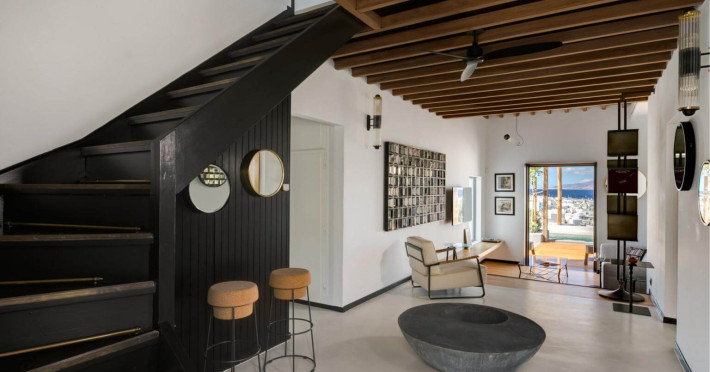 Cel mai apropiat aeroport este Aeroportul Syros Island, situat la o distanță de 34 km. La cerere proprietatea organizează transfer la/de la aeroport contra cost.