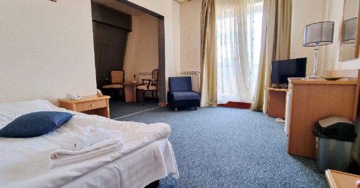 Garsoniera: 1 pat matrimonial si o canapea / pat pentru 1 persoana.