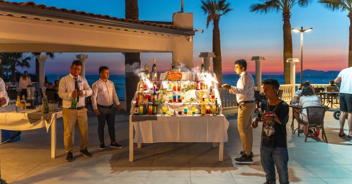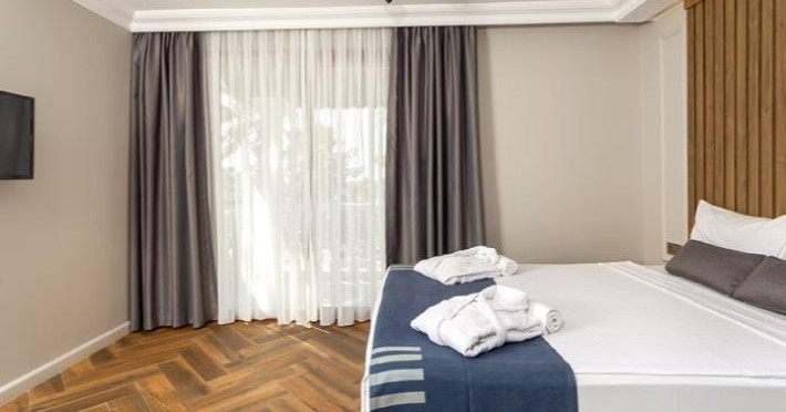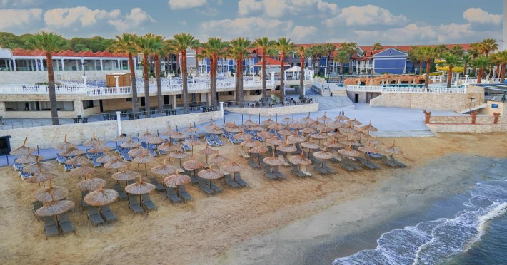 Localizare : 80 fata de plaja. Facilitati : Complet renovat, piscina, plaja private, parcare private, TV, balcon la etaj. Facilitati apartamente: Apartament B1: 1 dormitor cu pat dublu si pat single, living cu canapea dubla extensibila, colt de bucatarie si baie. Apartament A : 1 dormitor cu canapea dubla extensibila, 1 pat single, colt cu chicineta, balcon cu vedere la strada, baie Apartament C : 1 dormitor cu pat dublu si 1 pat single, 1 dormitor cu 2 paturi single, living cu canapea dubla extensibila, colt de bucatarie si baie. Apartament B2 : 1 dormitor cu 1 pat dublu, canapea dubla extensibila in living, colt de bucatarie si baie. Atentie: Intrarile se fac in fiecare zi de Sambata , pe un sejur minim de 7 nopti sau multiplu de 7 nopti. * 1 umbrela si 2 sezlonguri pe plaja sunt incluse incluse in pret. GARANTIE OBLIGATORIE : 100 de euro (Se returneaza la plecare). *1 umbrela si 2 sezlonguri pe plaja incluse incluse in pret. Atentie: Lenjeria de pat si prosoapele nu sunt incluse in pret si nu se gasesc in apartamente. Turistii sunt nevoiti sa le aduca de acasa. Servicii extra, obligatorii (la fata locului) : Consumul de gaz, apa si electricitate : Apartamente tip A : 60 euro/saptamana ; Apartamente tip B : 65 euro/saptamana ; Apartamente tip C : 70 euro/saptamana ; Apartamente tip D : 75 euro/saptamana Servicii extra, optionale (la fata locului) : Patut copii : 30 euro/saptamana; Lenjerie de pat : 8 uro/persoana/fiecare schimb ; Pat suplimentar : 40 euro/saptamana.Datorita dinamicitatii domeniului disponibilitatea ofertelor se modifica de la un moment la altul. De aceea ofertele sunt valabile in limita locurilor disponibile. Agentia nu este responsabila pentru eventualele neconcordante care pot aparea intre informatiile privind tarifele si alte detalii din site si informatiile primite in agentie. In aceste cazuri vor avea prioritate, intotdeauna, informatiile primite in agentie.