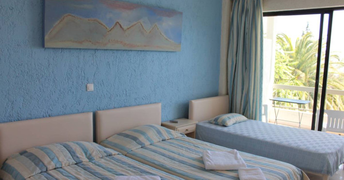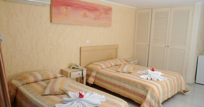 Camerele hotelului sunt confortabile, amenajate modern si ofera vedere la mare sau la gradina. Fiecare camera este dotata cu: aer conditionat, telefon, internet Wi-Fi, TV si canale prin satelit, uscator de par, frigider si balcon.