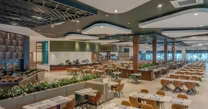 Oaspeții pot savura un mic dejun tip bufet, vegetarian sau vegan. Bergiz Hotels & Resorts Kemer are un restaurant care servește mancăruri din bucătăria fructe de mare, internatională și grătar. La cerere, sunt disponibile și preparate vegetariene, halal și fără gluten.