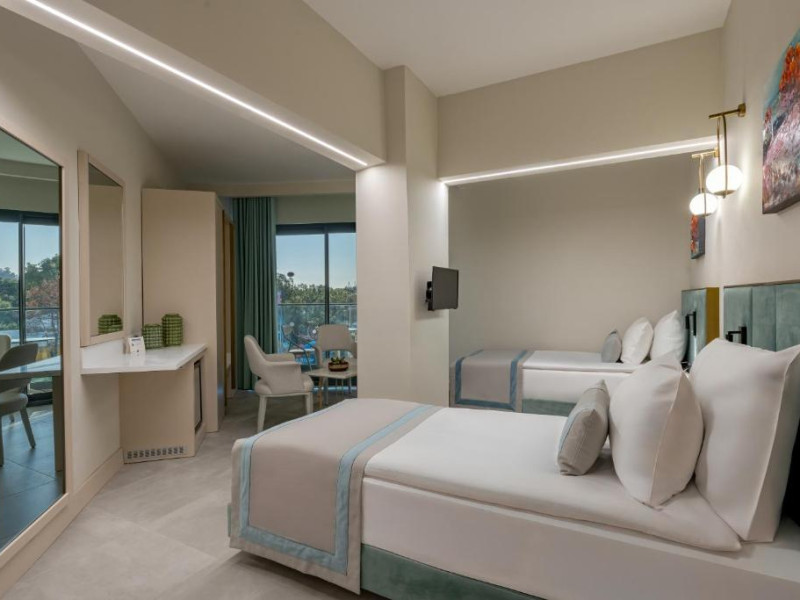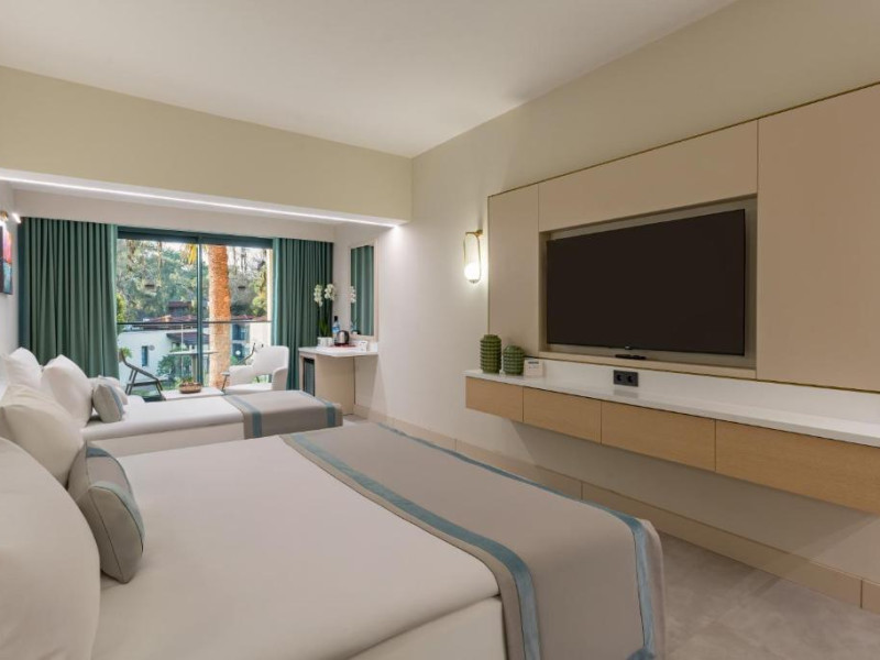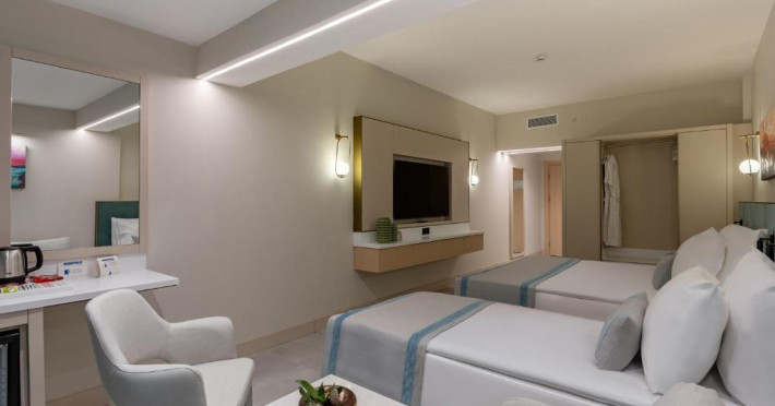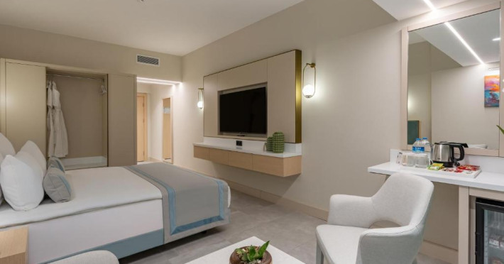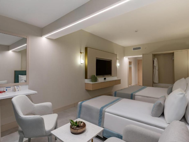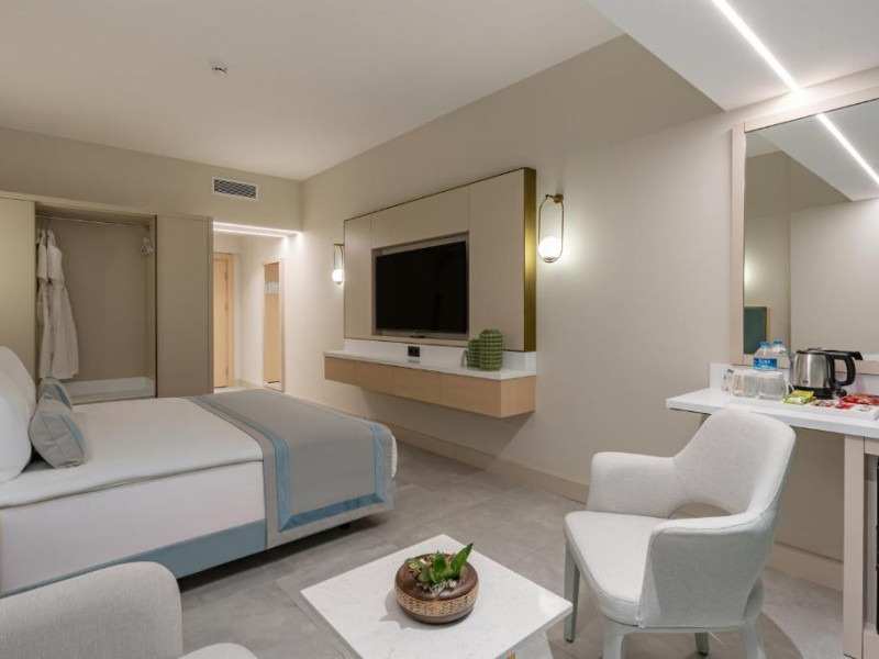 La acest hotel, camerele au balcon. Fiecare cameră oferă climatizare, cutie de valori și televizor cu ecran plat, iar anumite camere de la Bergiz Hotels & Resorts Kemer au și patio. Camerele includ un dulap pentru haine și o un ibric electric.