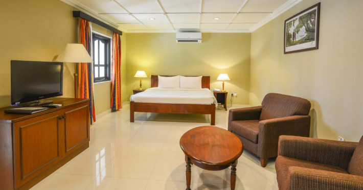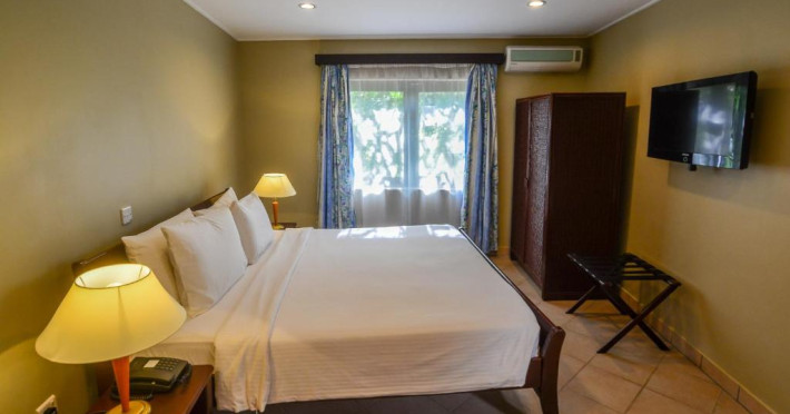Camerele și vilele sunt decorate in nuanțe calde și dispun de balcoane sau terase private cu vedere spre grădina tropicală sau Oceanul Indian. Oaspeții se pot bucura de piscina infinity cu vedere panoramică spre ocean, precum și de restaurantul principal care servește specialități creole și internaționale.