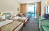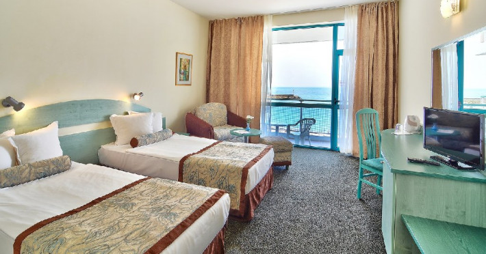 Facilitati camere: In total hotelul are 264 de camere duble (capacitate maxima de 2 adulti si 1 copil sau 3 dulti) - cu o suprafata de aprox. 29 mp, fara balcon. Camerele au fie 2 paturi separate (Twin) sau paturi duble si fotoliu extensibil. Apartamentele au o capacitate de maxim 2 adulti si 3 copii si au o suprafta in mediede 60 mp, fara balcon. Sunt compuse din dormitor cu un pat dublu si o camera de zi cu canapea extensibila. Toate camerele au aer conditionat, telefon, mini-bar (contra cost si aprovizionat la cerere), TV prin cablu, acces Wi - Fi gratuit, uscator de par, cabina de dus, balcon unde se gaseste o masa si scaune. Podeaua camerelor este acoperita cu mocheta.