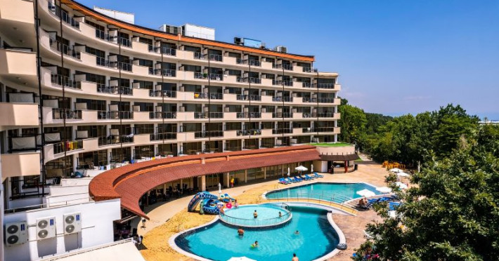 Hotelul este situat într-o locație privilegiată, la numai 300 de metri distanță de plajă, pe un mic deal ce oferă o perspectivă panoramică uimitoare asupra mării. Aflat la aproximativ 2 kilometri de centrul stațiunii, acesta oferă o combinație perfectă între liniștea și intimitatea conferite de amplasamentul său și accesul ușor către centrul animat al stațiunii. Cu priveliștea sa fermecătoare spre coasta Mării Negre, oaspeții pot contempla frumusețea naturii și pot simți adierea mării chiar din confortul propriilor camere. În plus, etajele superioare ale hotelului oferă o panoramă spectaculoasă asupra mării, fiind locul ideal pentru a admira răsăritul sau apusul într-un cadru deosebit.Facilități hotel