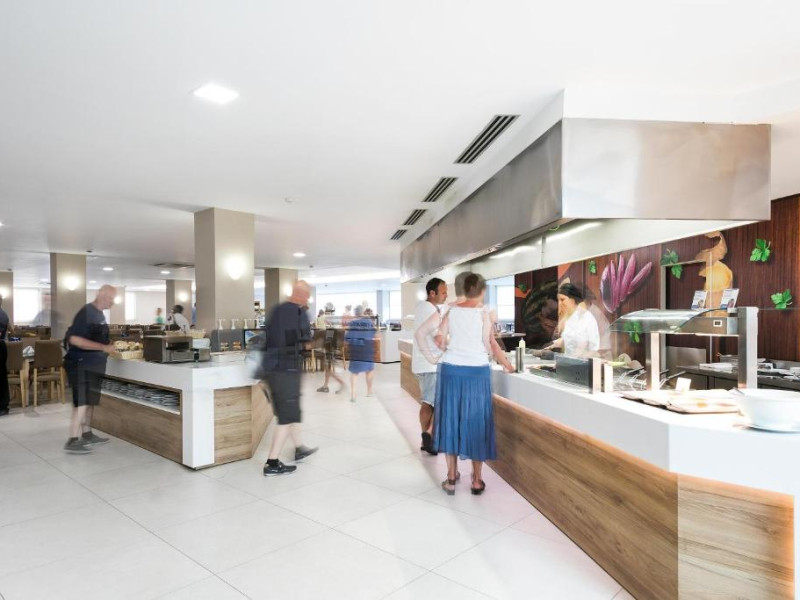 Hotelul are un restaurant tip bufet, care servește preparate din bucătăria locală și internațională. Există, de asemenea, o cafenea și un lounge bar.