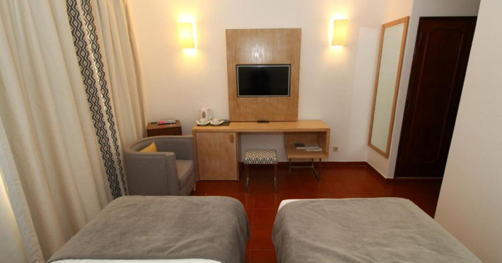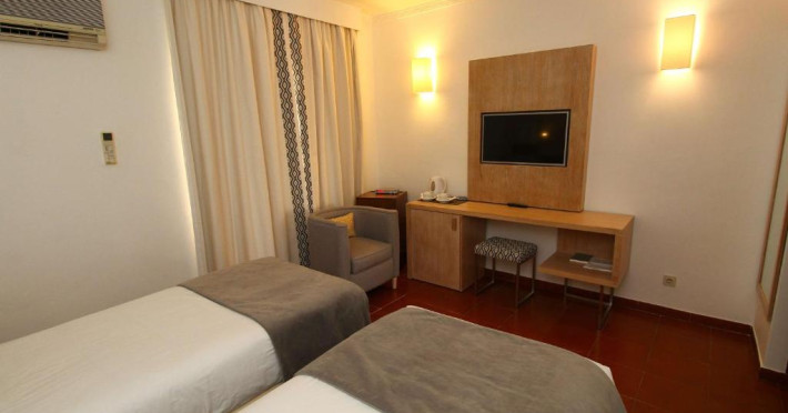 Camerele Hotelului Dom Bernardo au aer conditionat si interioare simple cu mobilier din lemn si pardoseală din dale. Toate oferă TV cu ecran plat, minibar, seif, perdele opace și baie proprie cu loțiuni și șampon. Camerele au vedere la oras sau la rau.
