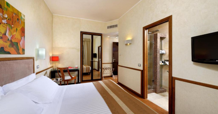 Toate camerele au podea cu parchet, TV LCD cu ecran de 26 sau 32 inch cu 12 canale Mediaset Premium, fierbător electric și saltea cu spumă cu memorie, cu strat superior. Baia este dotată cu uscător de păr și articole de toaletă. Unele camere oferă balcon cu vedere la oraș. La sosire, oaspeții primesc o băutură de bun venit.