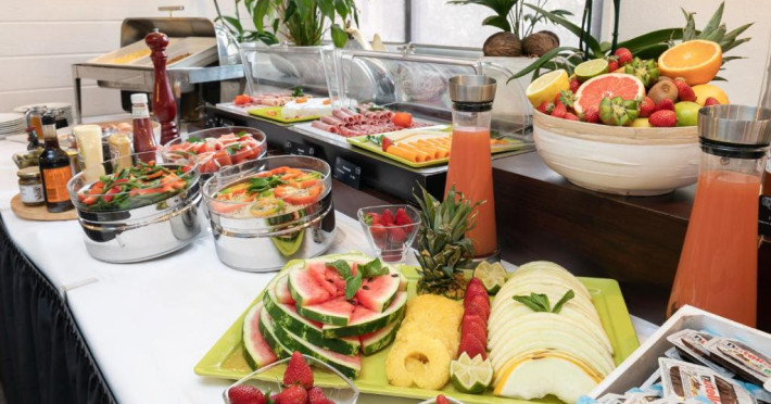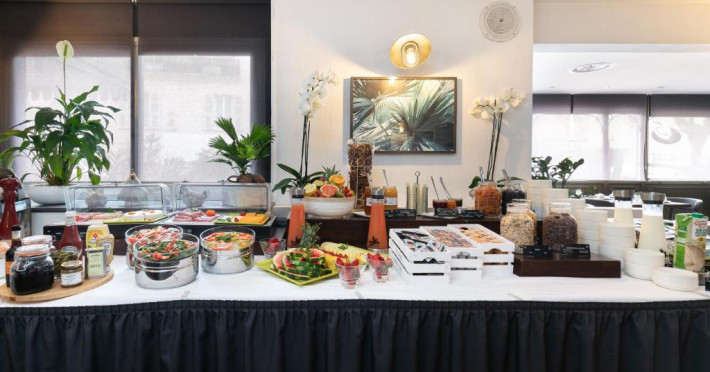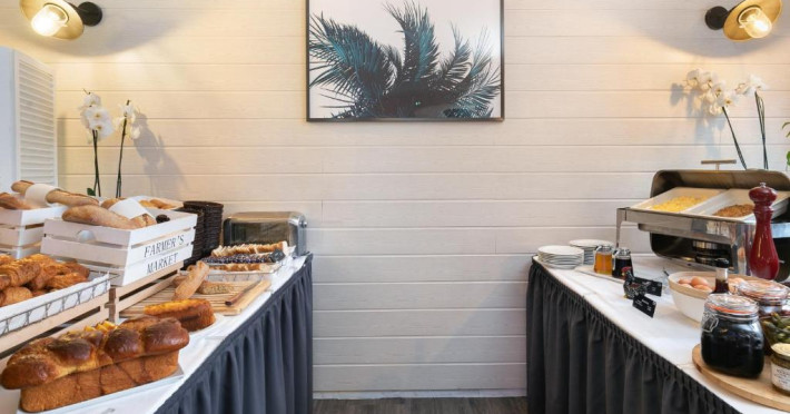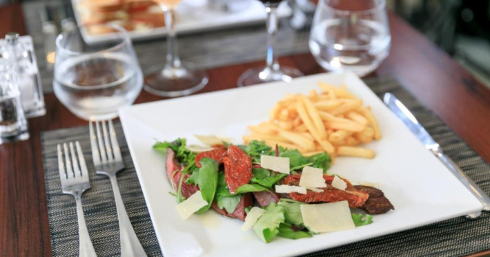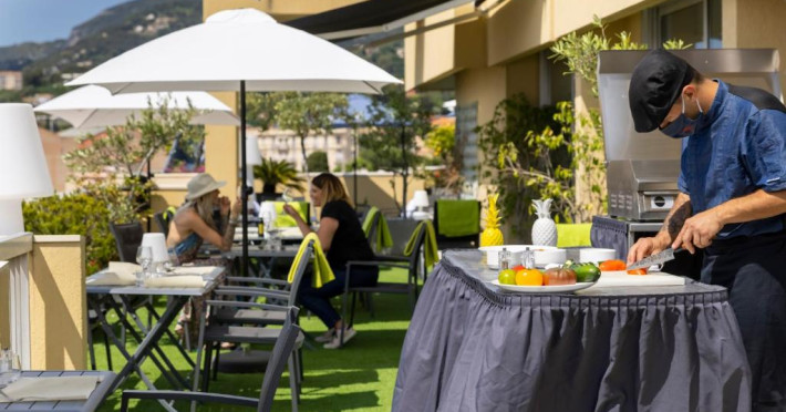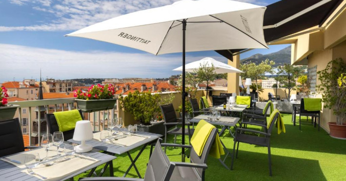 Le 5, restaurant tip braserie, oferă un meniu tradițional cu preparate mediteraneene si provensale. Bucătarul-șef prepară mese echilibrate si deserturi de casă, utilizand de obicei citrice din Menton.