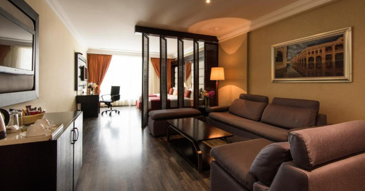 Oaspeții se pot bucura de specialități autentice din Orientul Mijlociu la restaurantul hotelului, intr-o atmosferă elegantă.