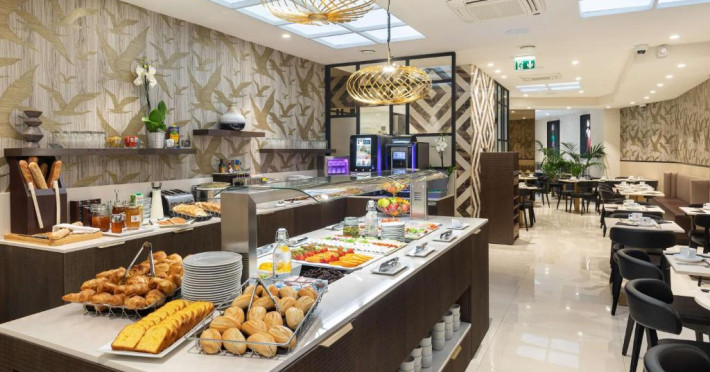 In fiecare dimineată la Hôtel Massena este servit un mic dejun american tip bufet. De asemenea, oaspetii pot savura o băutură la barul hotelului, iar la cerere se oferă room service.