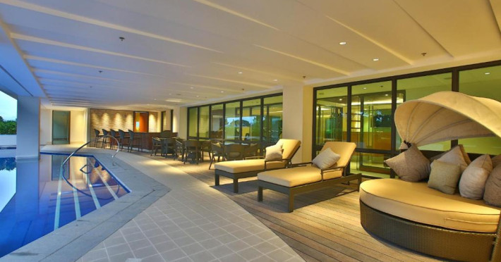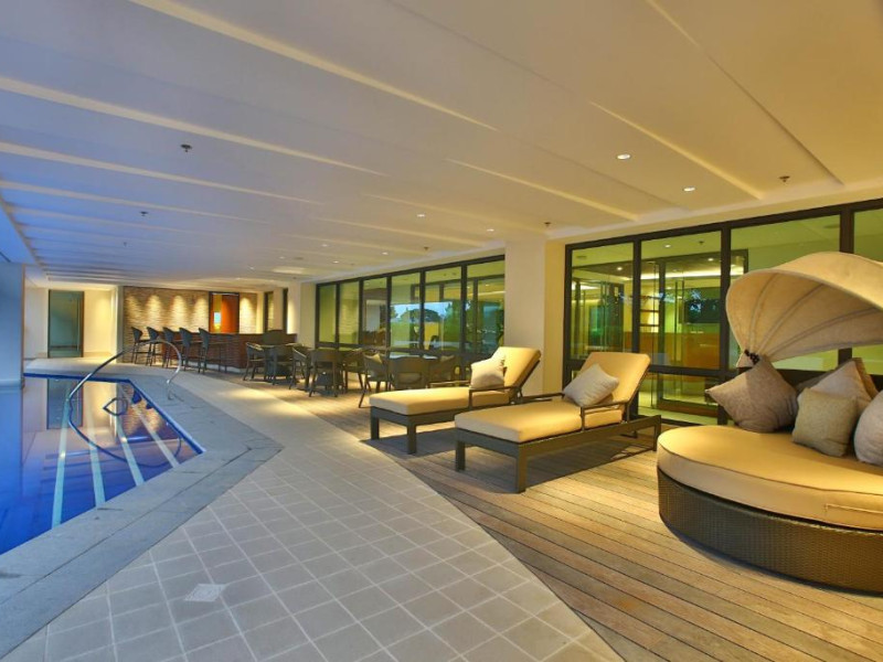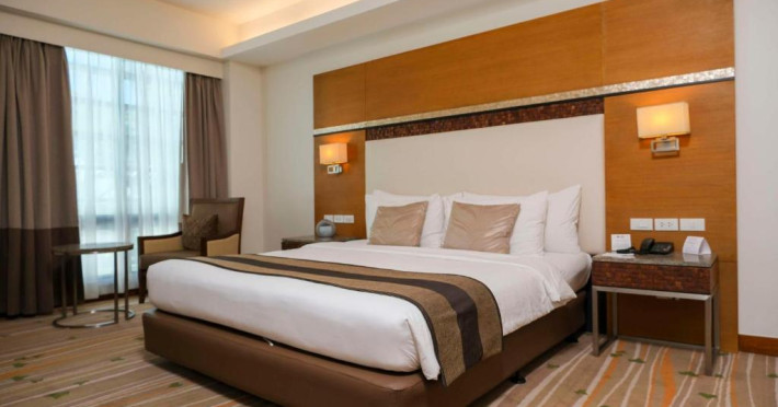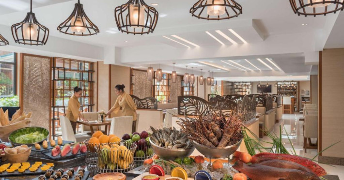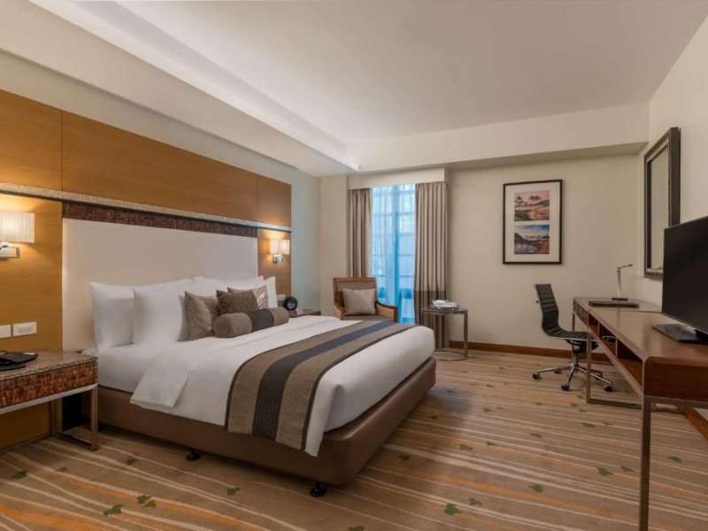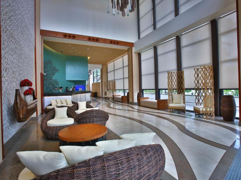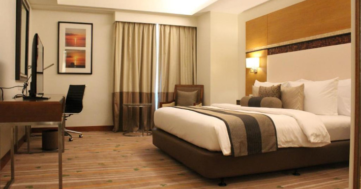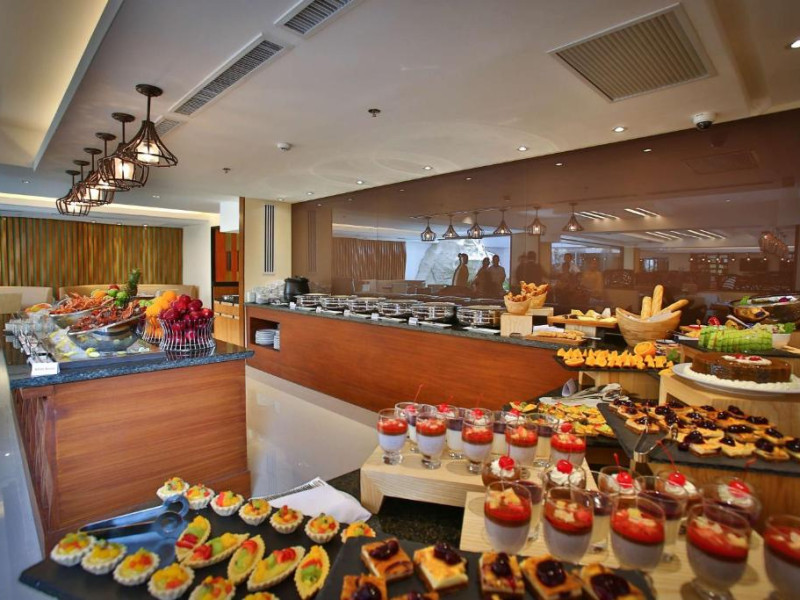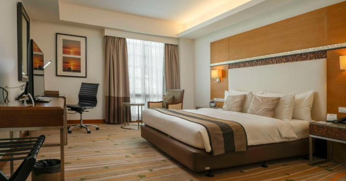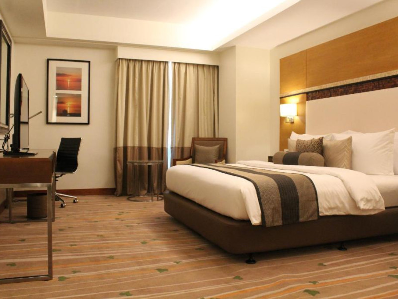Restaurantul hotelului servește preparate din bucătăria internațională și filipineză, iar Sky Deck Lounge oferă cocktailuri rafinate și o atmosferă relaxantă. Hotelul dispune de centru de conferințe și facilități pentru evenimente.