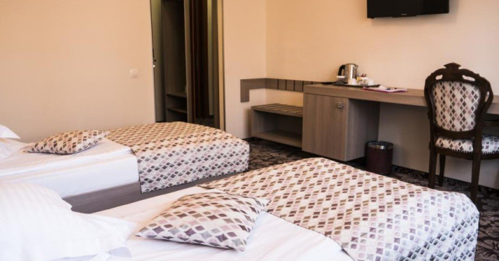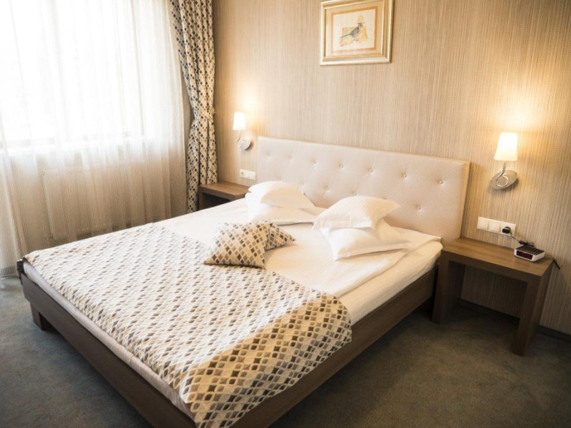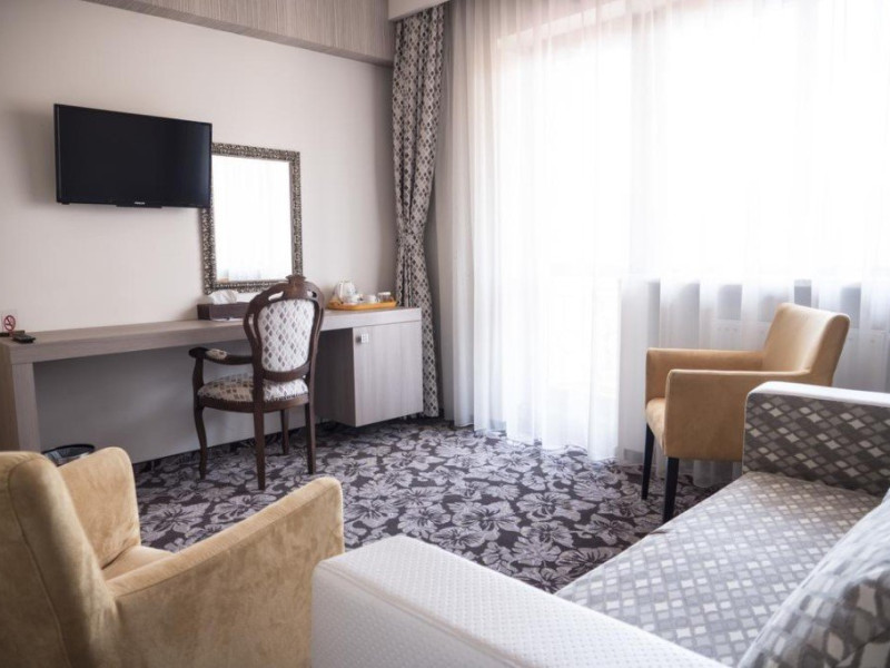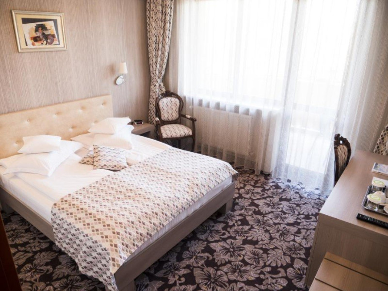 Hotelul are un restaurant cu aer conditionat, cu bar si terasa cu vedere la parc. Puteti degusta preparate din bucataria internationala si romaneasca traditionala.