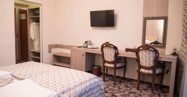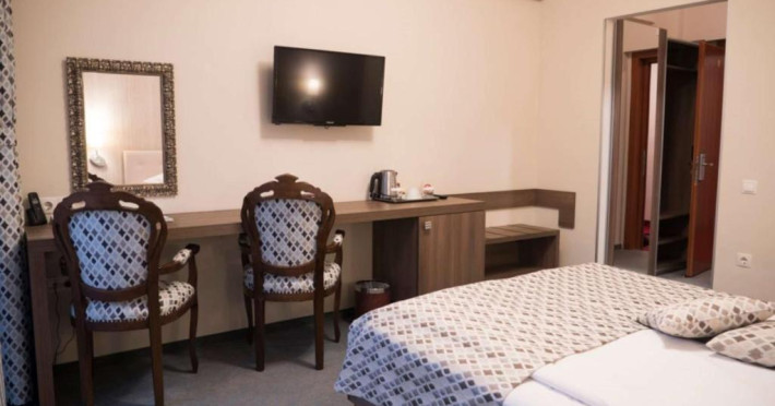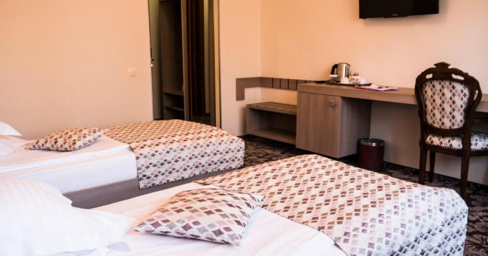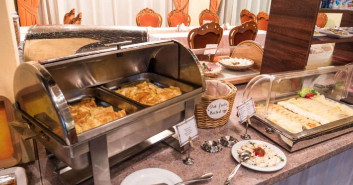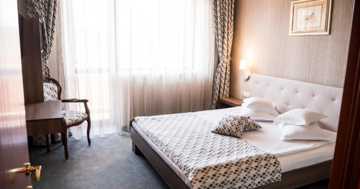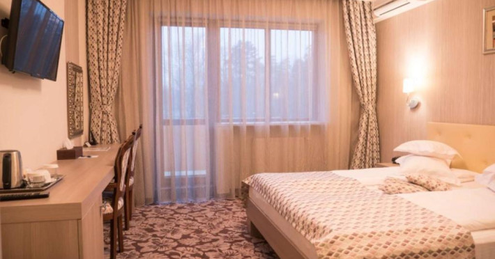 Hotelul are un restaurant cu aer condiționat, cu bar și terasă cu vedere la parc. Puteti degusta preparate din bucătăria internatională si romanească traditională.