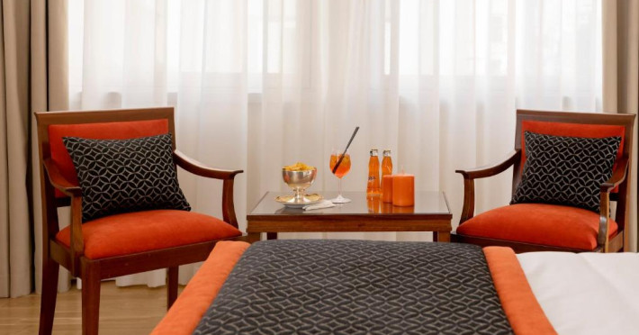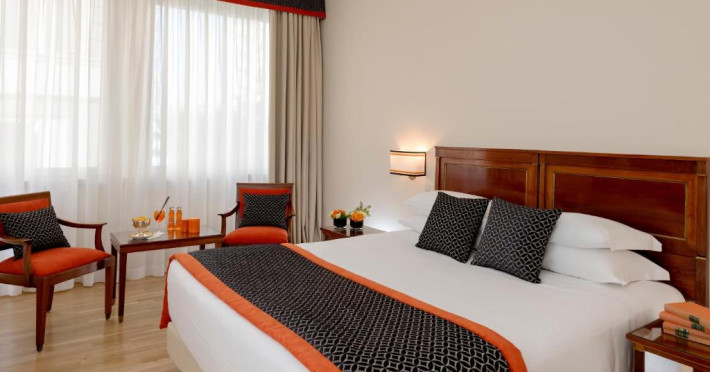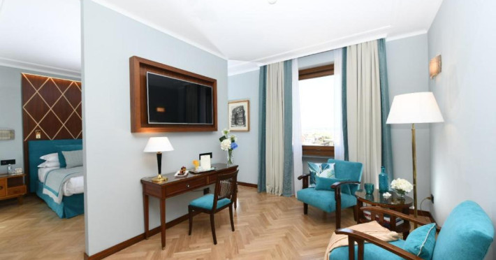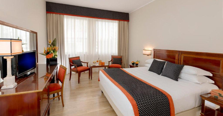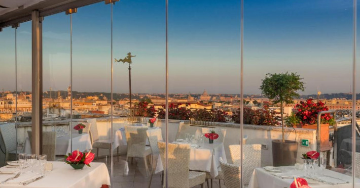 Camerele spațioase combină eleganța clasică cu facilități moderne, multe dintre ele oferind vederi panoramice asupra orașului eternal. Restaurantul de pe acoperiș incantă oaspeții cu specialități italienești autentice și priveliști spectaculoase asupra Romei.