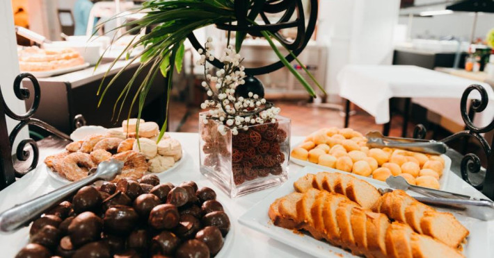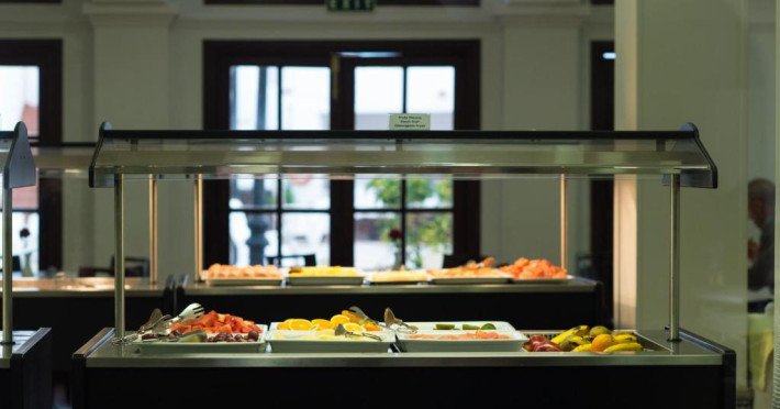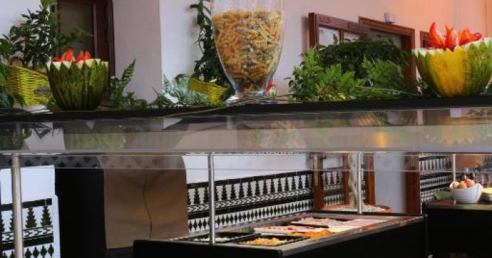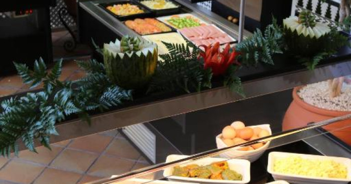 Locurile unde se poate lua masa cuprind un restaurant, o cafenea și un bar. Se oferă spre rezervare demipensiune. Micul dejun, un prânz à la carte și cina îmbie prin savori culinare și oferta diversificată de bucate. Pentru preferințe speciale, complexul de apartamente are la dispoziție și feluri de mâncare vegetariene. De asemenea, locul de cazare pune la dispoziție gustări.