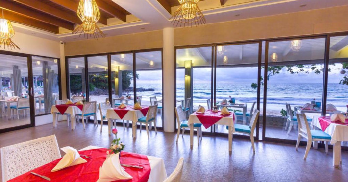 The buffet breakfast is best enjoyed on the resort balcony overlooking the sea. On The Beach Restaurant serves local, Asian and international specialties. Refreshing drinks are available at the pool bar.