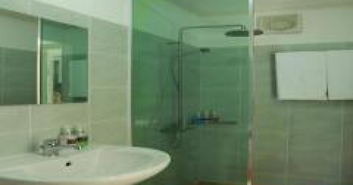 An outdoor pool and a children''s pool are on site. Other recreational amenities include a sauna and a fitness center.
