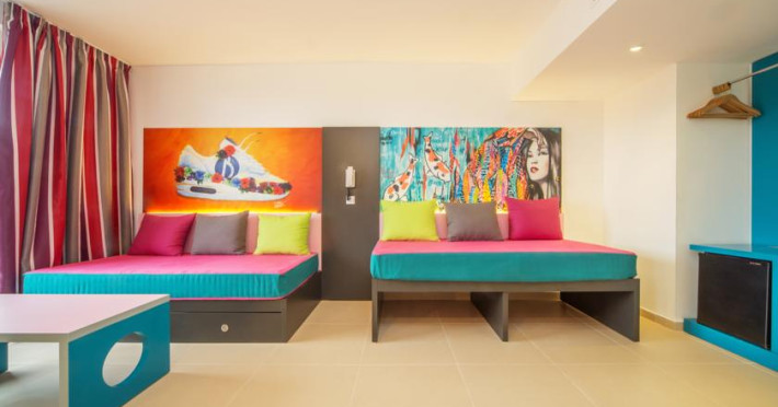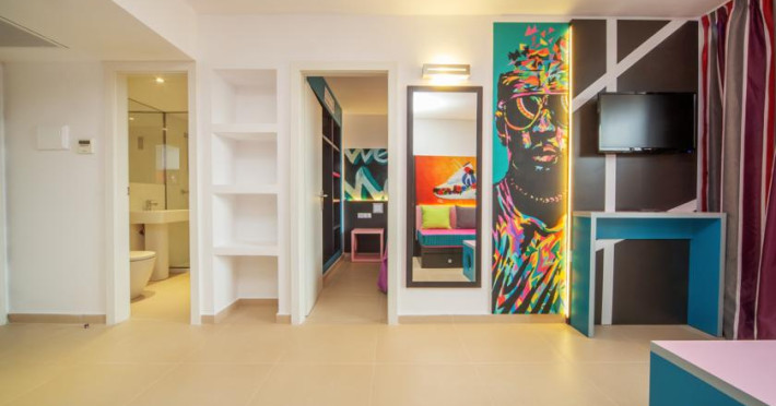 This modern and comfortable hotel has been totally refurbished in 2014 and is the ideal choice of accommodation for groups of friends who wish to enjoy a unique experience and have lots of fun. The property is a stones throw from the beautiful sandy beach and surrounded by several entertainment and dining venues, allowing its visitors to have a pleasant and fun stay in this part of the island. The hotel counts with several accommodation units, all of them boasting a contemporary style and state-of-the-art amenities. They offer a friendly and chic look and have practical features like a walk-in shower. Superior facilities include a stage where everyone can enjoy live music, an adults-only water park and a beach club to relax with a drink. Those who wish to keep fit during their holidays can do it at the on-site gym and everyone may sample the tasty dishes at the hotels restaurants.. This hotel is Adults Only, so the hotel will not accept any booking of under 17s (every 17th year old client must come with an adult over 18). The client documentation will be requested upon arrival at reception front desk and if the reservation includes a child we will apply a cancellation on the day of arrival with 100% costs.Datorita dinamicitatii domeniului disponibilitatea ofertelor se modifica de la un moment la altul. De aceea ofertele sunt valabile in limita locurilor disponibile. Agentia nu este responsabila pentru eventualele neconcordante care pot aparea intre informatiile privind tarifele si alte detalii din site si informatiile primite in agentie. In aceste cazuri vor avea prioritate, intotdeauna, informatiile primite in agentie.
