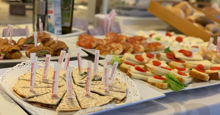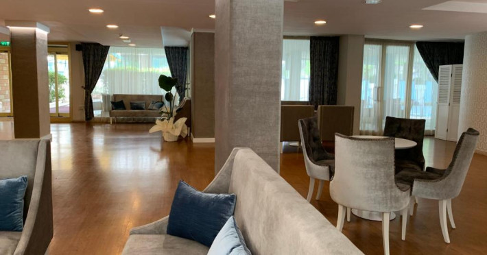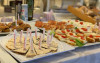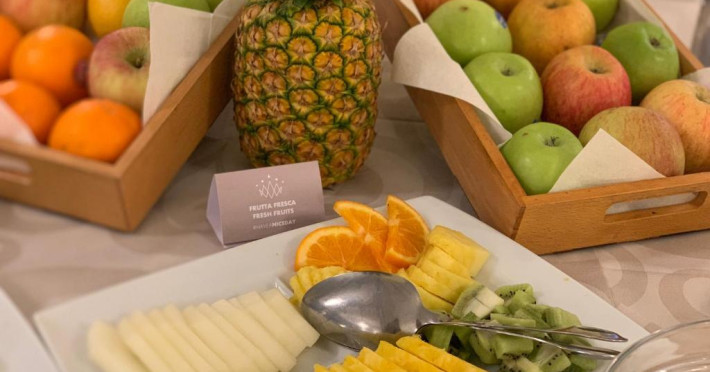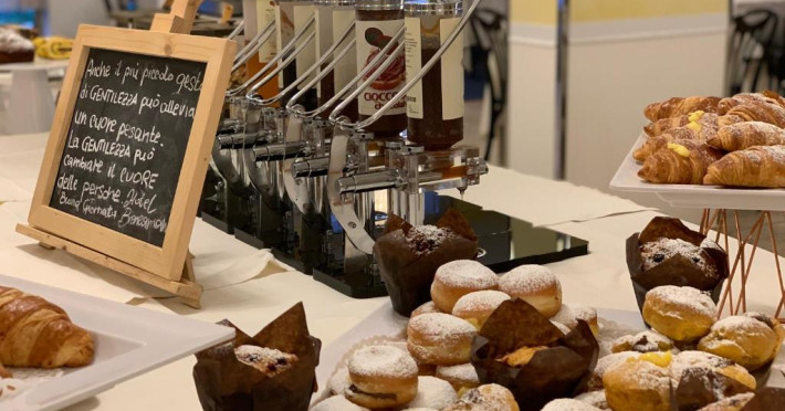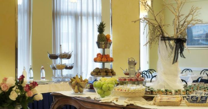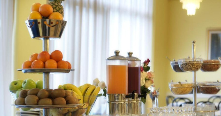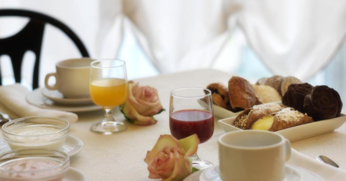 In fiecare dimineață se oferă un mic dejun tip bufet, cu prăjituri proaspăt coapte și produse de patiserie. Restaurantul, situat la 50 de metri de hotel, servește specialități locale și este deschis din luna mai pană in septembrie.