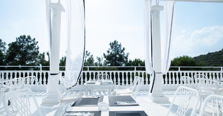 Locatie: Bianco Olympico Beach Resort se afla in peninsula Halkidiki, pe bratul Sithonia la doar 2.5 km distanta de panoramicul sat Vatopedi, unde apa marii ofera cateva culori desprinse de realitate.Unitatea de cazare este inconjurata de maslini seculari, iar atmosfera creata este perfecta pentru petrecerea sejurului la marea Egee.