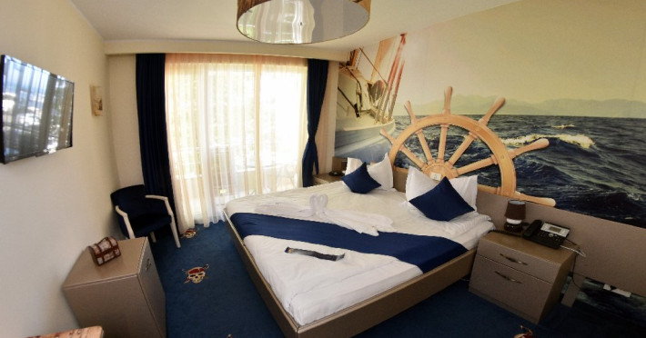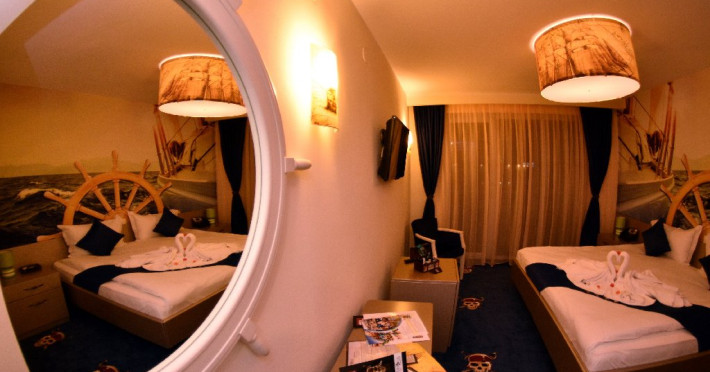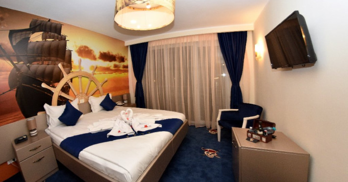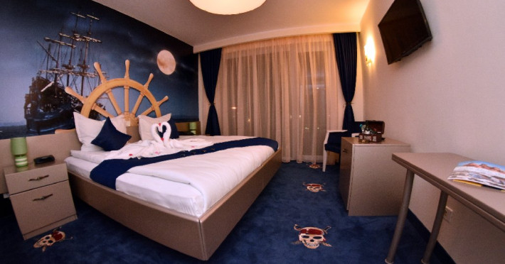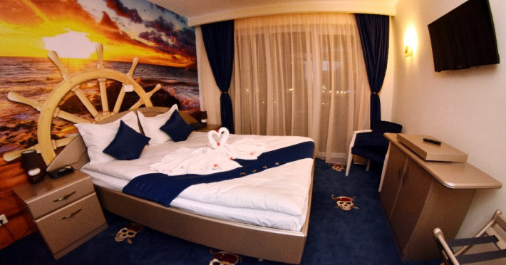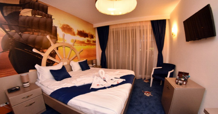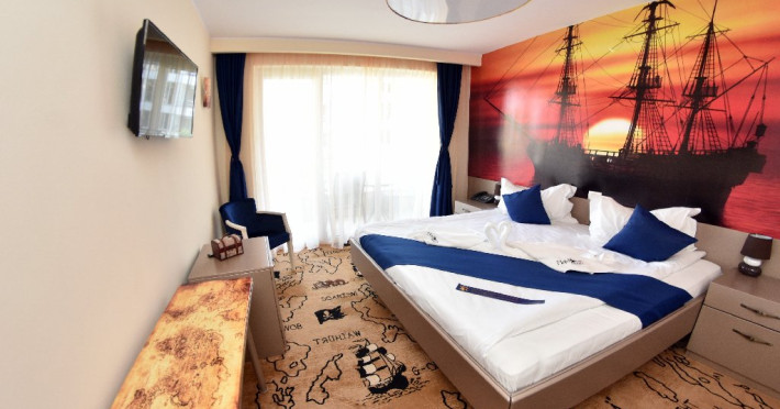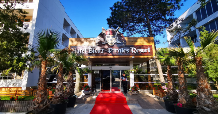 Localizare: Hotel Pirates Resort 3*** Mamaia (fost Hotel Bicaz), reclasificat la 3 stele, isi intampina turistii incepand cu vara 2016 cu un nou nume si un nou concept, prietenos atat cu cei mici dar si cu cei mari. Hotel Pirates Resort este un hotel tematic unic pe litoral, situat in nordul statiunii, la doar 10 de metri de plaja si se invecineaza cu hotelurile Vega, Apollo si Siret.Camere: