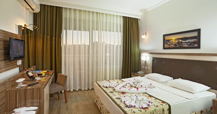 Guests have a choice of 213 non-smoking rooms, including 173 double rooms, located in two 3-storey buildings with lifts. The reception desk in the lobby is staffed round the clock. Amenities include a baggage storage service, a safe and a currency exchange service. Wireless internet access (for a fee) allows guests to stay connected while on holiday. The tour desk offers assistance with booking excursions. Wheelchair-accessible facilities are available. A number of shops, including a supermarket and souvenir shop, are great for shopping or just browsing. The grounds of the hotel feature a playground and a lovely garden. Additional amenities include a TV room and a playroom. Guests arriving by car can park their vehicles in the garage (no extra charge) or in the car park. Further services and facilities include a childcare service, medical assistance, room service, a laundry service, a hairdresser, a coin-operated laundry and a hotel doctor. Travellers with bicycles can make use of the on-site bicycle storage area. 2 conference rooms are available for lectures, presentations and meetings.Datorita dinamicitatii domeniului disponibilitatea ofertelor se modifica de la un moment la altul. De aceea ofertele sunt valabile in limita locurilor disponibile. Agentia nu este responsabila pentru eventualele neconcordante care pot aparea intre informatiile privind tarifele si alte detalii din site si informatiile primite in agentie. In aceste cazuri vor avea prioritate, intotdeauna, informatiile primite in agentie.