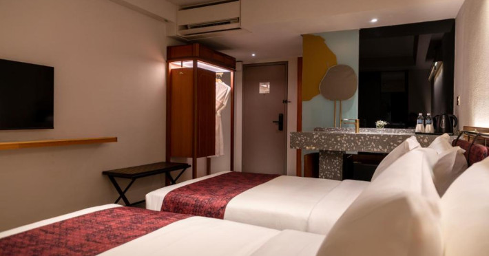 Cazare confortabilă: Camerele sunt dotate cu aer condiționat, băi private, vedere la oraș și facilități moderne, cum ar fi WiFi gratuit, minibaruri și televizoare cu ecran plat.