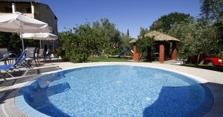 The hotel is situated in a quiet and charming location surrounded by gardens, woodlands and beautiful areas for walking, ideal for family holidays. Easily accessible, it lies on the main Corfu – Achillion road, only 6,5 km from town, in the Pondi area.