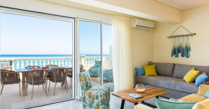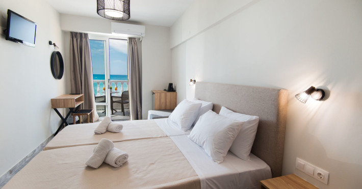 Acest hotel la plajă se află la Rethymnon, la cateva secunde de plajă.