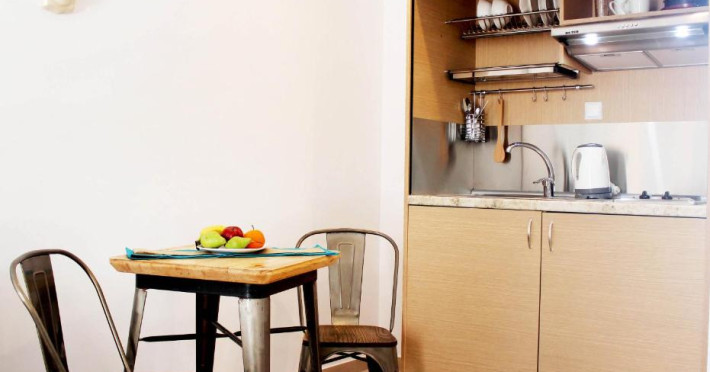 Oaspeţii îşi pot pregăti micul dejun şi alte mese şi le pot savura chiar pe balcon.