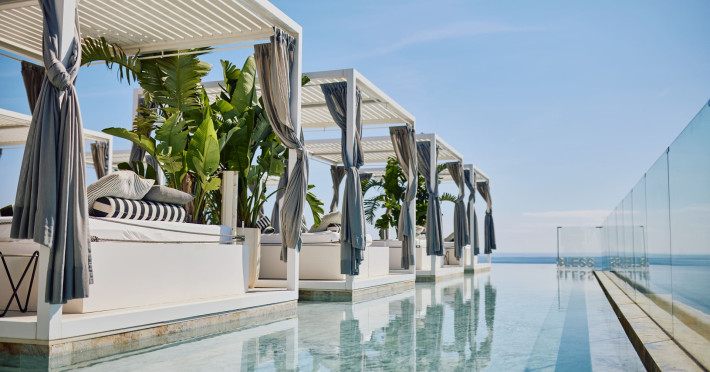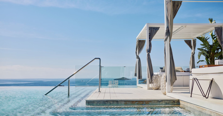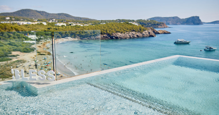 El Bless Hotel Ibiza está ubicado en una zona tranquila de la parte oriental de Ibiza, con vistas al mar Mediterráneo y a la isla de Tagomago,