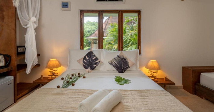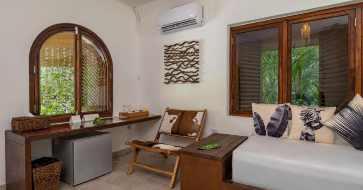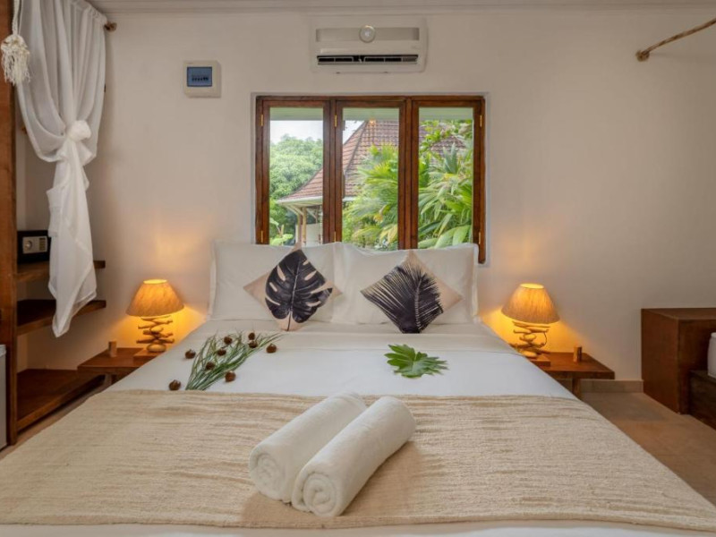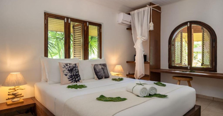 Camerele hotelului au aer condiționat, birou, fierbător, frigider, minibar, seif, TV cu ecran plat, baie privată cu duș, precum și o terasă. Camerele de la Bliss Hotel Praslin au lenjerie de pat și prosoape.