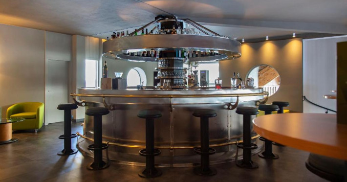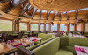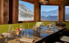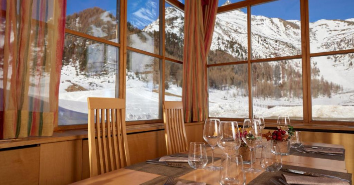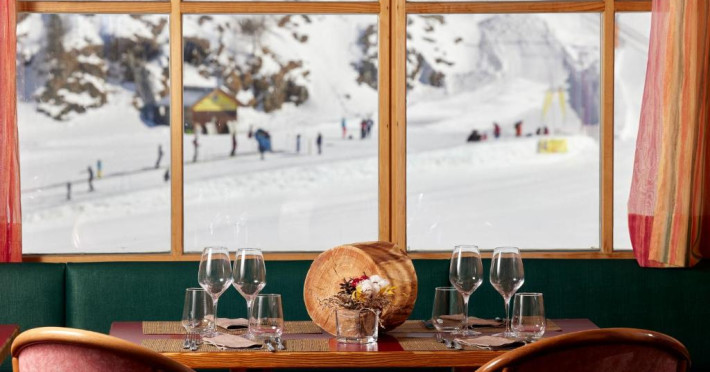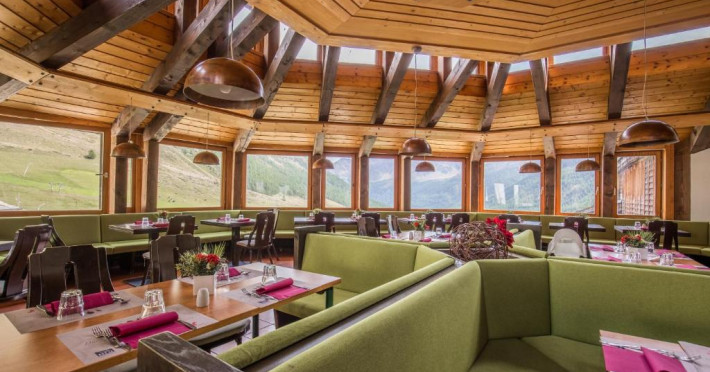 Restaurantul servește preparate din bucătăria italiană clasică și specialități internaționale. Sala de mese se bucură de vederi frumoase la munte.