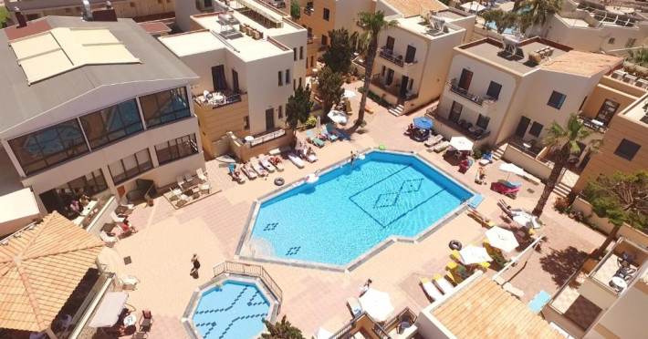Blue Aegean Hotel And Suites este o proprietate de 4 stele care se află pe malul mării, în Gouves (Creta-Heraklion), și oferă piscină în aer liber cu șezlonguri și umbrele de soare, precum și centru spa/wellness care asigură servicii pentru un sejur extrem de relaxant. Facilitățile de la Blue Aegean Hotel And Suites includ și sală de fitness. Pentru petrecerea timpului liber oaspeții au la dispoziție activități de agrement pe timpul zilei și programe de divertisment seara. Proprietatea are, de asemenea, servicii de recepție cu program non - stop și închirieri auto. Se oferă acces gratuit la internet Wi-fi în spațiile publice. Parcarea este posibilă pe stradă, în imediata apropiere a proprietății.