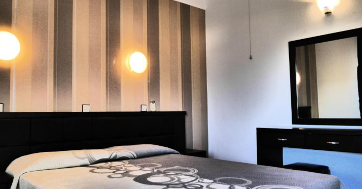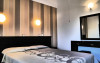 În camere există baie cu cadă sau duș ce are în dotare foehn și articole de toaletă gratuite. Unele camere au balcon cu vedere la mare sau la grădină. Fiecare cameră dispune de cană-fierbător. Camerele confortabile de la Blue Bay Beach Hotel au pardoseală de gresie/ marmură, aer condiționat, Tv cu canale prin satelit și seif. Oaspeții au acces gratuit la serviciul Wi-fi în camere. Toate camerele spațioase de la Blue Bay Beach Hotel au canapea în living, ceea ce oferă un plus de confort. Fiecare unitate de cazare include o chicinetă utilată cu frigider, plită de gătit și ustensile de bucătărie. De asemenea, este disponibilă o zonă de luat masa. Proprietatea oferă camere pentru familie cu o suprafață mai mare și un număr mai mare de paturi față de cele standard. Se pot rezerva de asemenea camere pentru nefumători.