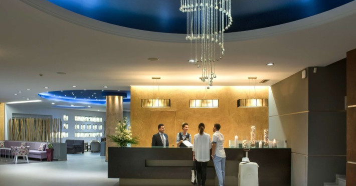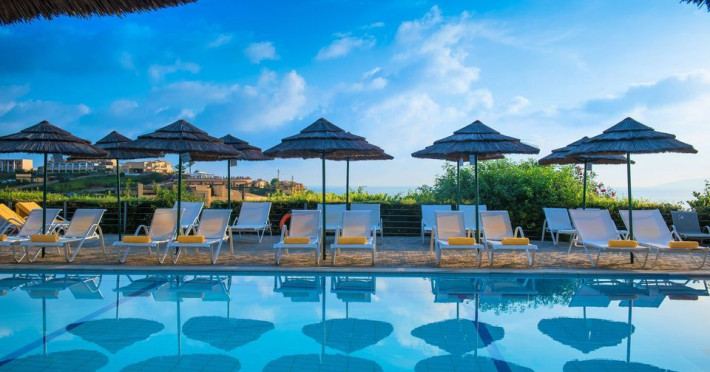 Blue Bay Resort Hotel is located on the northern side of Crete, 22 km from its capital city, Iraklion, in the quiet village of Agia Pelagia. Thanks to its privileged slope position, it offers breathtaking views of the Cretan Sea. For your vacation in an environment full of natural beauty, the Blue Bay Resort hotel has a wide selection of room types, offers excellent service in a friendly and familiar atmosphere and a range of leisure activities. The Blue Bay Resort hotel is an ideal choice for a relaxing and enjoyable holiday as well as a central point for excursions throughout the island of Crete. Blue Bay Resort Hotel - All Inclusive Package Gastronomy Concept 2017 Blue Bay Resort Hotel - Entertainment, Relaxation & RecreationDatorita dinamicitatii domeniului disponibilitatea ofertelor se modifica de la un moment la altul. De aceea ofertele sunt valabile in limita locurilor disponibile. Agentia nu este responsabila pentru eventualele neconcordante care pot aparea intre informatiile privind tarifele si alte detalii din site si informatiile primite in agentie. In aceste cazuri vor avea prioritate, intotdeauna, informatiile primite in agentie.