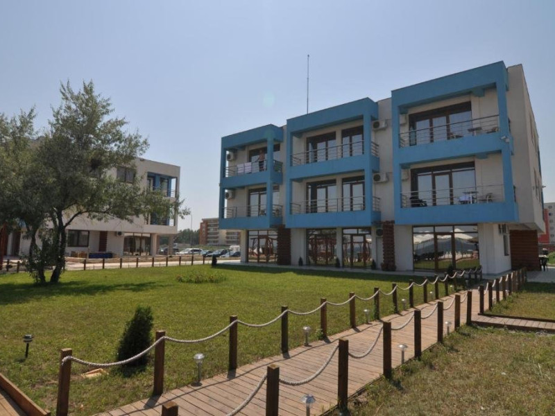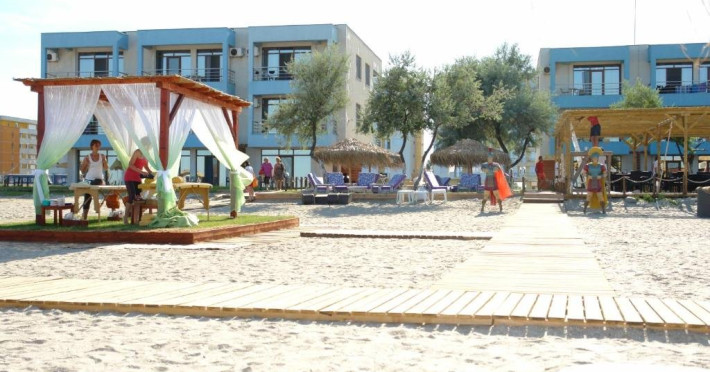 Localizare: Complexul de apartamente Blue Beach 3*** este situat pe malul marii si se adreseaza in mod special cuplurilor sau famiilor cu copii, care doresc sa petreaca la malul marii un sejur relaxant, linistit si in deplina siguranta.Descriere: Hotelul Blue Beach este alcatuit din 2 vile cochete, cu 2 nivele, terasa, plaja, parcare, loc de joaca pentru copii si spatiu verde. In cadrul Complexului paza este asigurata non-stop, atat prin monitorizare video cat si prin paza umana.