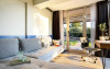 Family Deluxe (33-35 mp2): situate la parter cu vedere la gradina, pat dublu si 2 canapele, paravan despartitor intre spatiile de dormit (capacitate de pana la 4 persoane).
