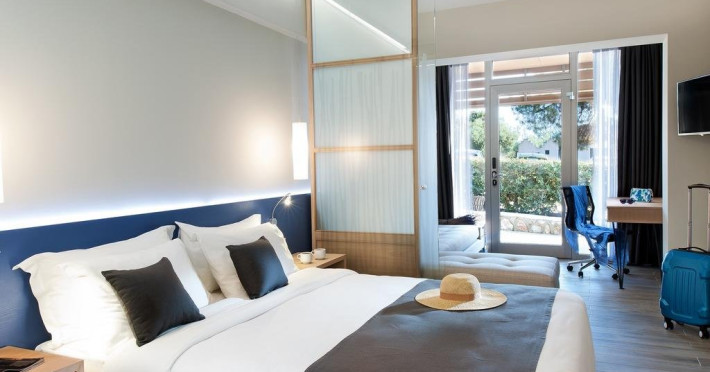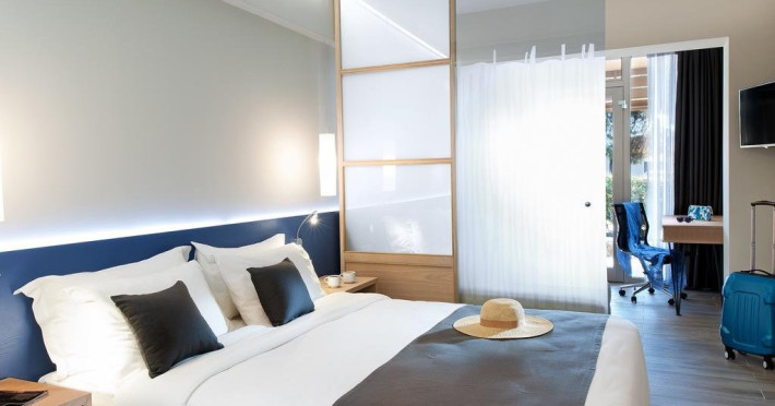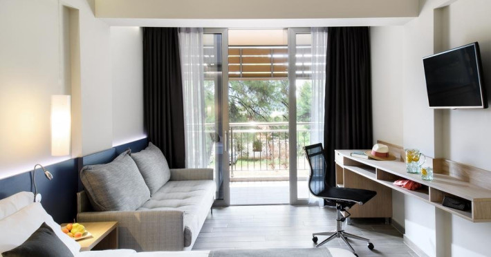 Camere Deluxe Double (cu vedere la gradina sau la mare): (28-30 mp2) cu pat dublu sau twin si canapea extensibila.