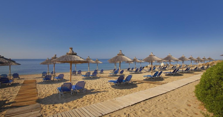 Localizare: Hotelul Blue Dolphin este plasat intr-o regiune inconjurata de paduri de pini si livezi de maslini, departe de zgomotul cotidian, la doar 50 de metri de plaja si 2 km de statiunea si satul pescaresc Metamarfossis.Unitatea de cazare dispune de multe facilitati pentru petrecerea timpului liber.