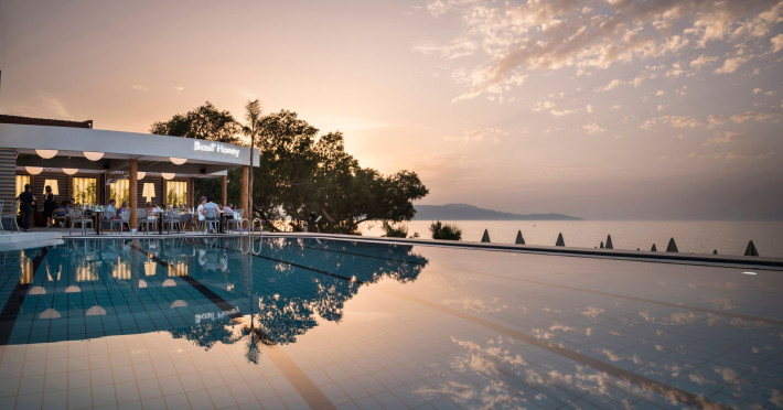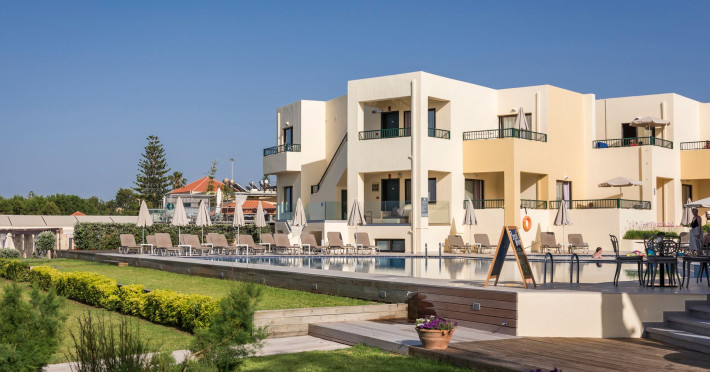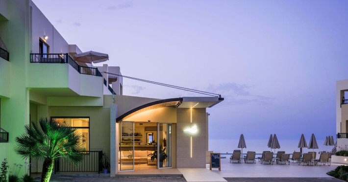 The Blue Dome Sea-View Hotel is a luxurious complex of thirty-nine apartments, located in the most beautiful destination in the island of Crete, in the Platanias village, not far from the city of Chania. Whether you are planning a holiday for yourself, for your family or an escape with your friends and colleagues, this is the most suitable place for you! Relax on our comfortable apartments, refresh by swimming in the pool or enjoy your meal by the sea! The Hotel consists of fourteen studio apartments, twenty-four one-bedroom apartments and one two-bedroom suite, all with sea-view! Furthermore there is a fine dining areas, a pool-bar, two swimming pools surrounded by free umbrellas and sun-loungers, a Yoga corner, a small library, bicycles and free parking area. Our new restaurant âBasilHoney features an à la carte menu of modern Cretan dishes, a wide range of Cretan wines and delicious desserts based on the finest ingredients provided by small local producers. A new Fitness center is furnished with state of art techno gym equipment. Yoga classes are organized twice per week.Datorita dinamicitatii domeniului disponibilitatea ofertelor se modifica de la un moment la altul. De aceea ofertele sunt valabile in limita locurilor disponibile. Agentia nu este responsabila pentru eventualele neconcordante care pot aparea intre informatiile privind tarifele si alte detalii din site si informatiile primite in agentie. In aceste cazuri vor avea prioritate, intotdeauna, informatiile primite in agentie.