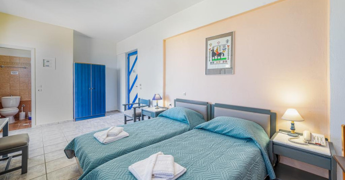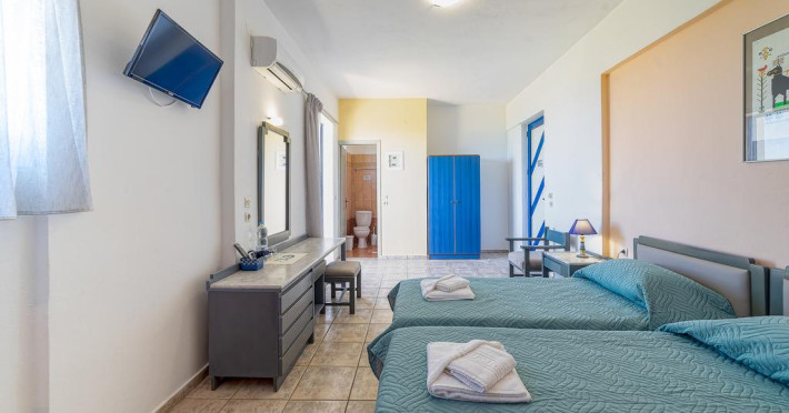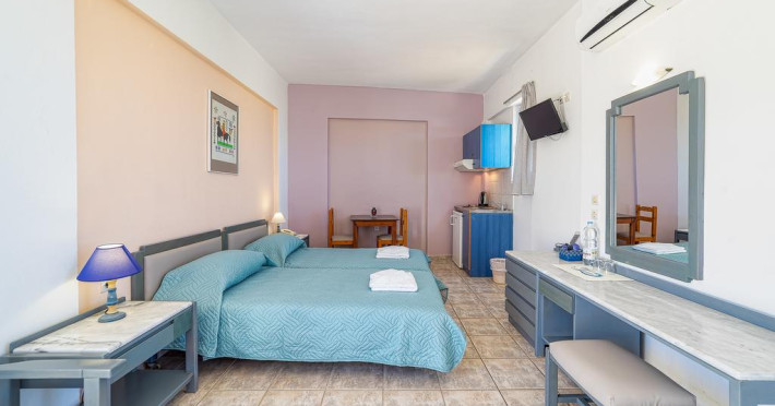 Sunt disponibile 20 camere. Fiecare cameră dispune de cană pentru prepararea apei calde. Oaspeții pot solicita serviciul de room service pentru a servi masa sau diverse băuturi. Camerele confortabile de la Blue Dream au pardoseală de gresie/ marmură, aer condiționat, Tv cu canale prin satelit și seif. Unele camere au balcon cu vedere la mare sau la piscină. În camere există baie cu cadă sau duș ce are în dotare foehn și articole de toaletă gratuite. Oaspeții au acces gratuit la serviciul Wi-fi în camere. Curățenia in cameră se face zilnic. Toate camerele spațioase de la Blue Dream au canapea în living, ceea ce oferă un plus de confort. Fiecare unitate de cazare include o chicinetă utilată cu frigider, plită de gătit și ustensile de bucătărie. De asemenea, sunt disponibile o zonă de luat masa și un cuptor cu microunde. Proprietatea oferă camere pentru familie cu o suprafață mai mare și un număr mai mare de paturi față de cele standard. Se pot rezerva de asemenea camere pentru nefumători.