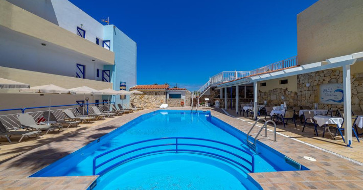 Blue Dream este o proprietate de 3 stele care se află în Stavromenos (Creta-Rethymno) și oferă piscină în aer liber, terasă cu șezlonguri și umbrele de soare, precum și centru spa/wellness care asigură servicii pentru un sejur extrem de relaxant. Pentru petrecerea timpului liber oaspeții au la dispoziție activități de agrement pe timpul zilei și programe de divertisment seara. Proprietatea are servicii de recepție cu program non - stop și închirieri auto. Se oferă acces gratuit la internet Wi-fi în spațiile publice. Parcarea este disponibilă la proprietate gratuit.