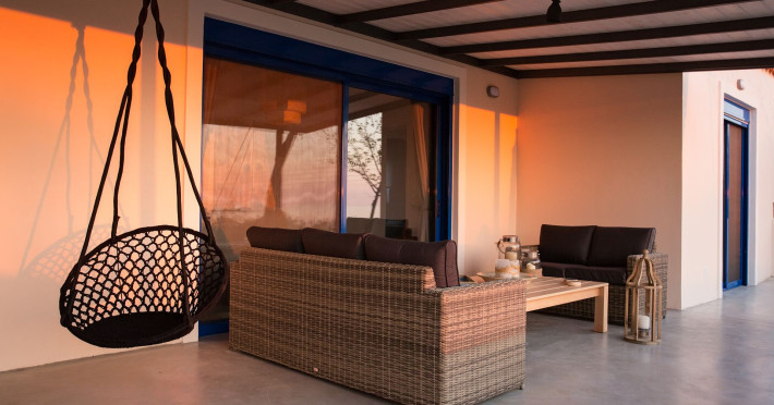 2 Independent Luxury Villas. Villa Blue 1 is a three bedroom ground floor apartment of 125 sq.m. with 3 bathrooms, living-room, kitchen, and spacious veranda. There are 2 ensuite bedrooms with double beds and a bedroom with two single beds. Villa Blue 2 is 2 bedroom ground floor apartment of 65 sq.m. with2 bathrooms, living-room, kitchen and spacious veranda. One ensuite bedroom with double bed and one bedroom with single bed. In the living-room there is a sofa bed. Both Villas have a wonderfull sea view from their verandas towards the sunset and Methonis village. The property is only 5 min. away on foot from Methonis beach.Datorita dinamicitatii domeniului disponibilitatea ofertelor se modifica de la un moment la altul. De aceea ofertele sunt valabile in limita locurilor disponibile. Agentia nu este responsabila pentru eventualele neconcordante care pot aparea intre informatiile privind tarifele si alte detalii din site si informatiile primite in agentie. In aceste cazuri vor avea prioritate, intotdeauna, informatiile primite in agentie.