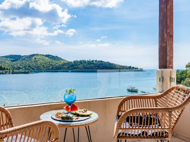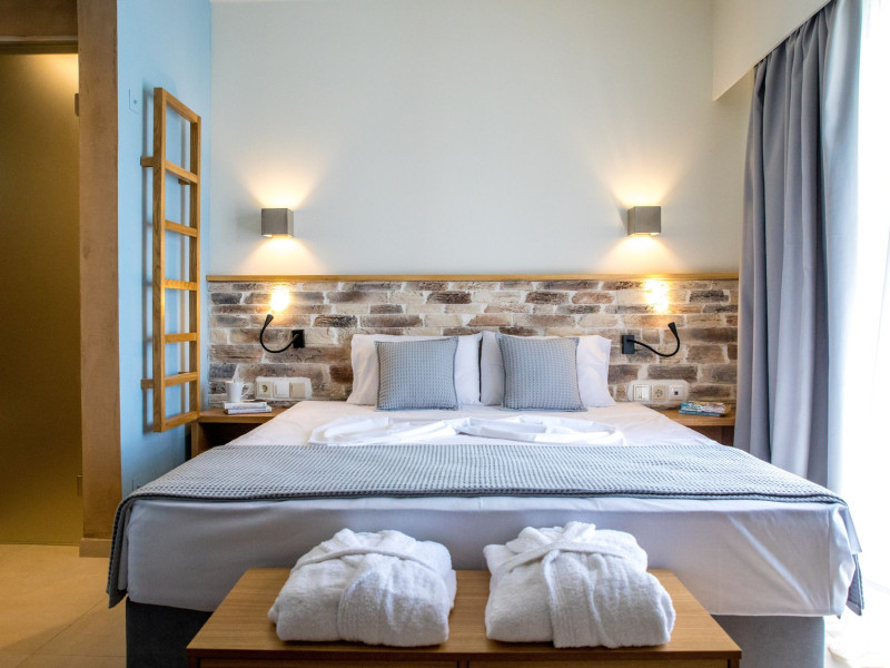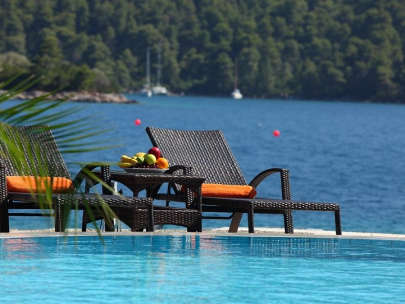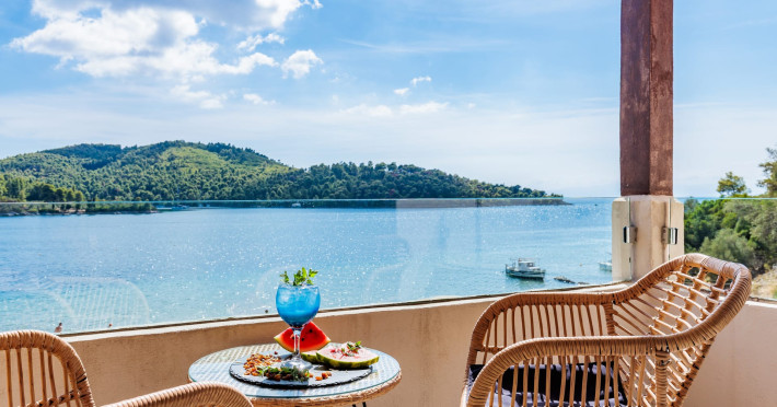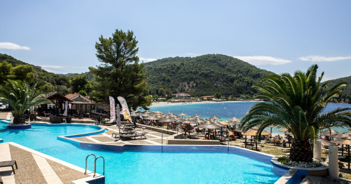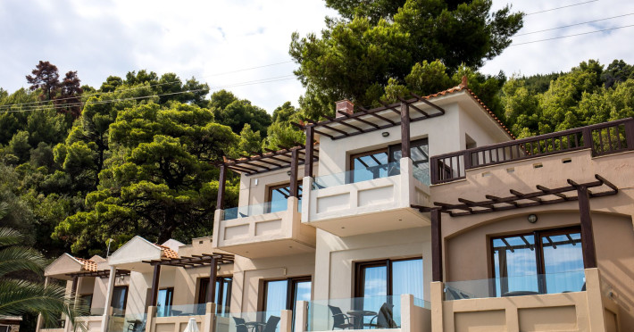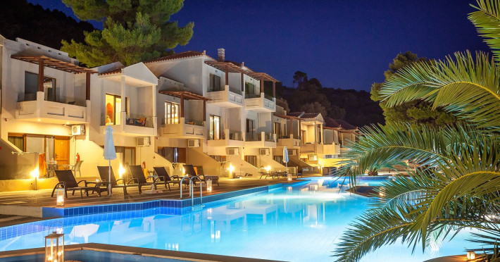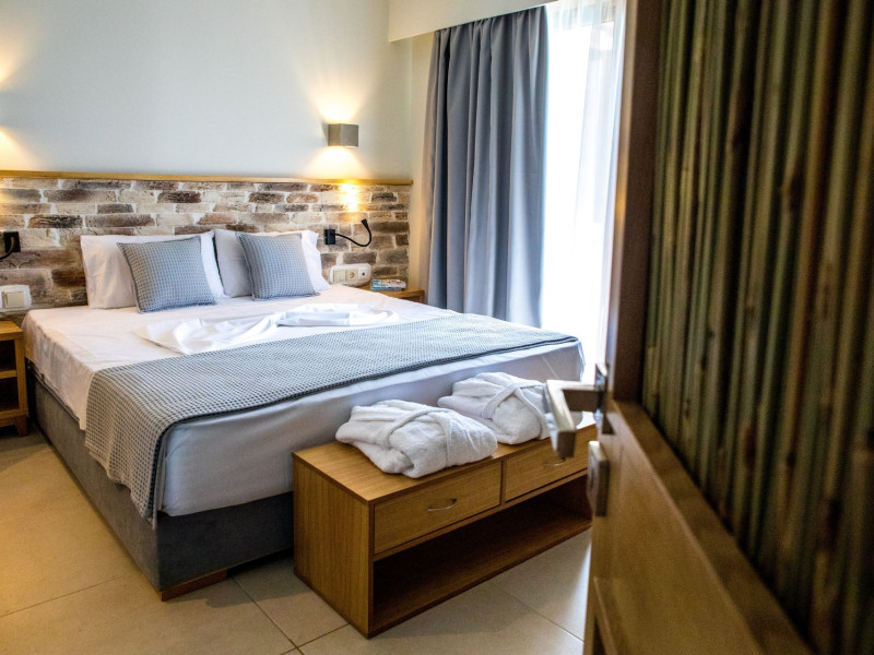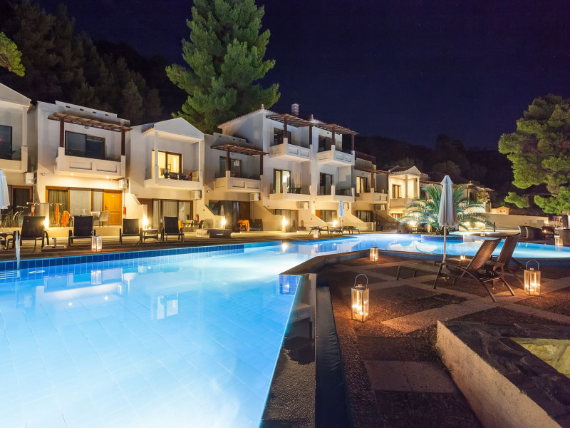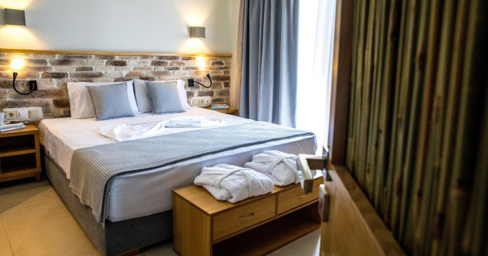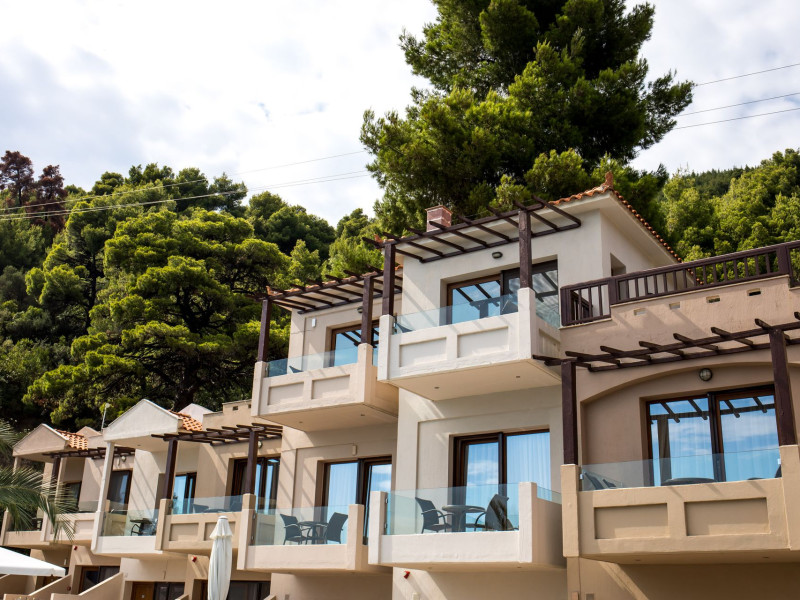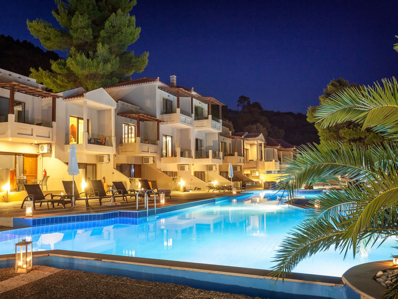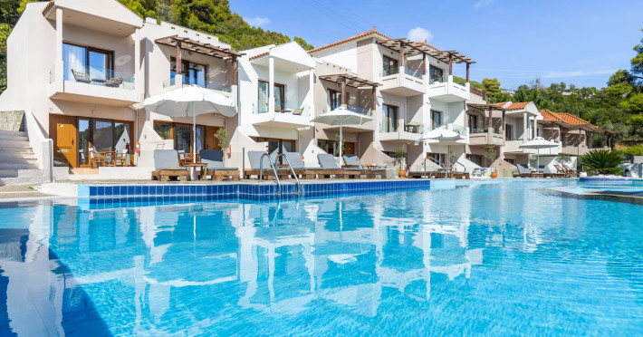 Located in one of the most enchanting landscapes of Skopelos island, in the green bay of Panormos and at a distance of 12-16 km southwest of Skopelos Town, the 3-key "Blue Green Bay" property was created in 2009. The complex is built in the peaceful embrace of the cove, on the Blue Flag awarded beach and is a real oasis of relaxation, comfort and enjoyment of the sea.The eighteen rooms of double, superior double and suites, all elegant, with the magnificent beach stretching out in front of them and pine trees reaching the sea all around, make up a painting of indescribable beauty.From the terrace or the balcony of the rooms, guests have the privilege of enjoying the view of this unique picture across the bay of Bloe, a small natural harbor with a magnificent sunset. The swimming pool is outstanding and the umbrellas along with the beach chairs are available free of charge to our guests.After a refreshing swim in the pool or the crystal clear waters of Panormos, you can enjoy a drink at the beach bar, under the shade of the huge pine trees of the accommodation.Located in one of the most enchanting landscapes of Skopelos island, in the green bay of Panormos and at a distance of 12-16 km southwest of Skopelos Town, the 3-key "Blue Green Bay" property was created in 2009. The complex is built in the peaceful embrace of the cove, on the Blue Flag awarded beach and is a real oasis of relaxation, comfort and enjoyment of the sea.The eighteen rooms of double, superior double and suites, all elegant, with the magnificent beach stretching out in front of them and pine trees reaching the sea all around, make up a painting of indescribable beauty.From the terrace or the balcony of the rooms, guests have the privilege of enjoying the view of this unique picture across the bay of Bloe, a small natural harbor with a magnificent sunset. The swimming pool is outstanding and the umbrellas along with the beach chairs are available free of charge to our guests.After a refreshing swim in the pool or the crystal clear waters of Panormos, you can enjoy a drink at the beach bar, under the shade of the huge pine trees of the accommodation.
