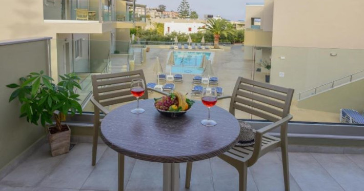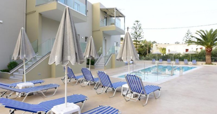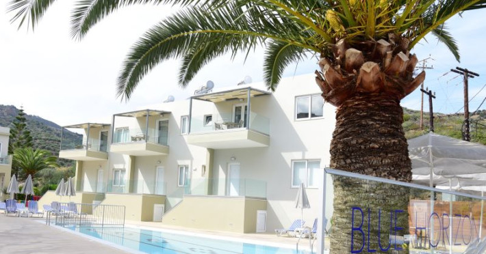 Blue Horizon Apartments se găsește în partea de nord a Cretei, amplasat între Heraklion și Rethymno, în afara frumoasei stațiuni turistice Bali. Este vorba despre un mic complex de studiouri și apartamente, recent renovat, care operează în regim self-catering. Hotelul oferă 26 de garsoniere și 7 apartamente cu un dormitor în plan deschis. Construit pe o mică peninsulă înălțată, oferă o priveliște panoramică asupra golfului și a mării.Localizare